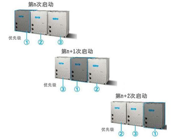 美的MDV水源熱泵智能多聯中央空調系統根據系統負荷情況,輪換設置優先開啟的室外機模塊的壓縮機順序,平衡分配每臺室外機模塊的運行時間,大大提高了機組的可靠性和使用壽命。