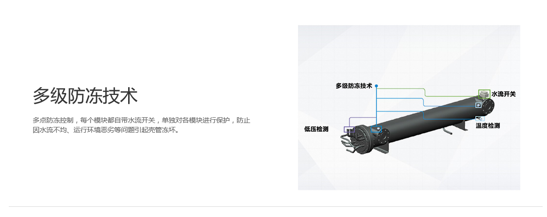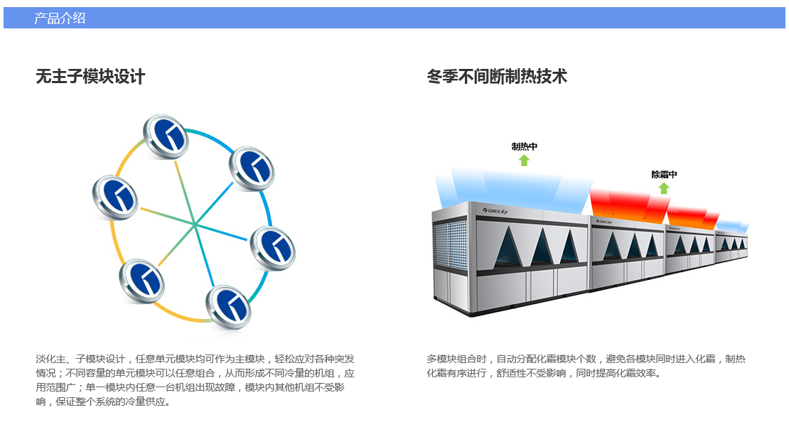 無(wú)主子模塊設(shè)計(jì)、不間斷制熱技術(shù)、模塊運(yùn)行均衡技術(shù)、多級(jí)防凍技術(shù)、寬運(yùn)行范圍